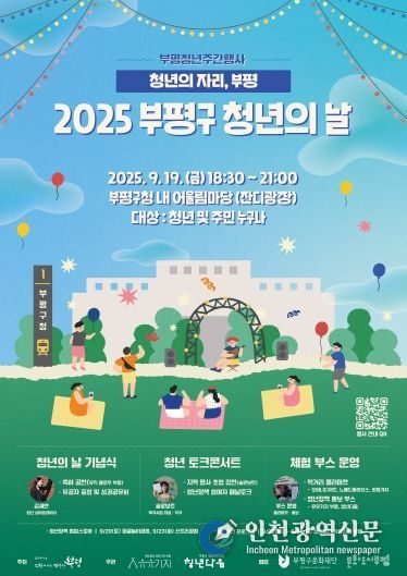 [인천광역신문] 최예준 기자 | 부평구는 청년의 날(9월 20일)을 맞아 오는 19일부터 25일까지 청년주간행사 ‘청년의 자리, 부평’을 개최한다고 밝혔다.