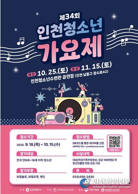 한편, '인천청소년가요제'는 그간 그룹 ‘코요테’의 신지와 가수 김수찬이 청소년 시절 참여해 가수의 꿈을 키운 전통 있는 지역의 대표 청소년 문화 행사로 자리 잡았다.