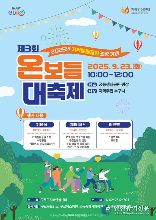 장인홍 구로구청장은 “온보듬 대축제는 치매에 대한 인식을 개선하고 세대가 함께 어울릴 수 있는 공동체적 분위기를 만드는 축제”라며 “앞으로도 주민 참여형 치매 친화 환경을 지속적으로 확산해 나가겠다”고 말했다.