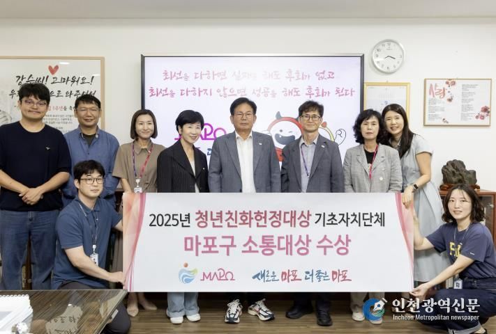 [인천광역신문] 최훈 기자 | 마포구는 지난 13일, 국회 사무처 소관 (사)청년과미래가 주관한 ‘2025년 제8회 청년친화헌정대상’ 소통부문에서 대상을 수상했다.