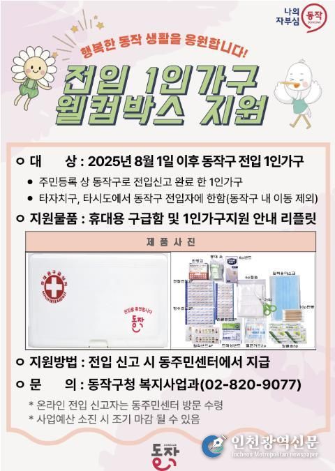 [인천광역신문] 최훈 기자 | 동작구가 지난 8월부터 전격 시행한 ‘전입 1인 가구 웰컴박스 지원사업’이 한 달 만에 700여 가구가 참여하며 순조로운 출발을 알렸다.