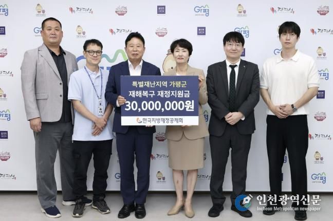 [인천광역신문] 관리자 기자 | 가평군은 17일 군수실에서 한국지방재정공제회로부터 특별재난지역 재정지원금 3,000만원을 전달받았다고 밝혔다.