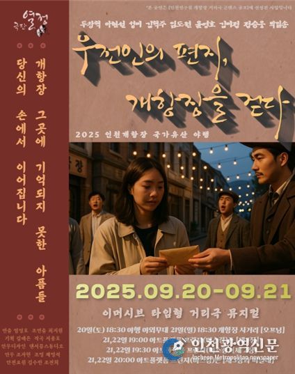 [인천광역신문] 최예준 기자 | 뮤지컬 '우전인의 편지, 개항장을 걷다'가 오는 2025년 9월 20일~21일 ≪2025 인천 개항장 국가유산 야행≫ 기간 중 개항장 일대에서 다시 선보인다.
