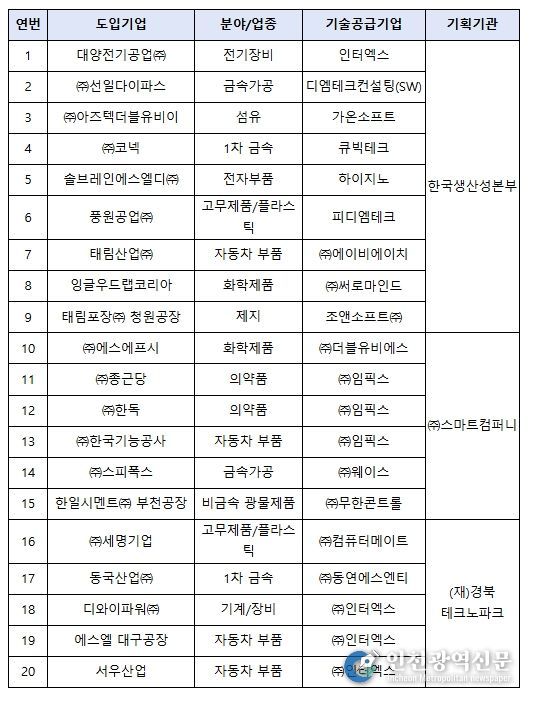 작년 선정기업 중 우수사례를 발표한 ㈜코아비스는 온도와 외부먼지 등에 취약한 자동차부품 생산라인에 무인 환경을 구축하고 가상현실에서 인공지능 기술을 활용해 최적의 공정관리·제어를 구현했다. 그 결과 생산성이 56% 향상됐고 공정설비 트러블도 20% 감소했다.