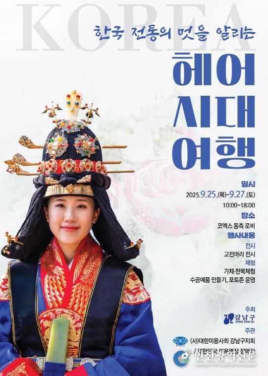 [인천광역신문] 최훈 기자 | 꿈이 모이는 도시, 미래를 그리는 강남구가 오는 9월 25일부터 27일까지 코엑스 동측 로비에서 ‘한국 전통의 멋을 알리는 헤어시대 여행’을 개최한다.