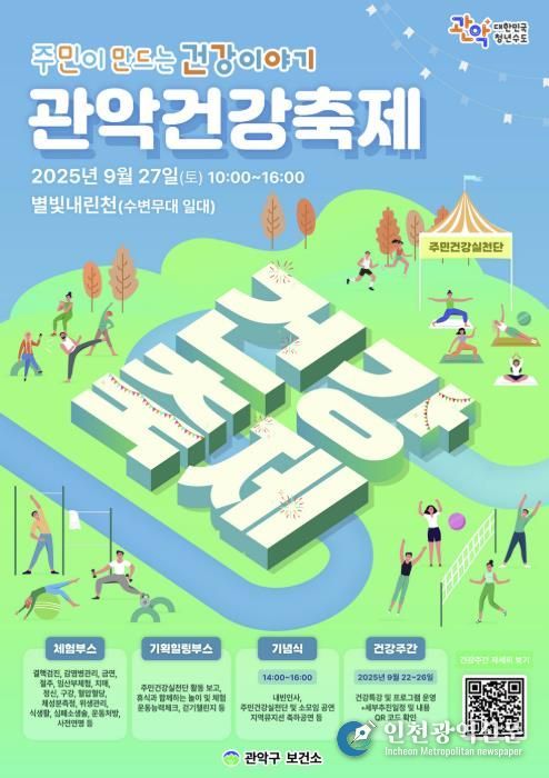 [인천광역신문] 최훈 기자 | 관악구가 오는 27일 오전 10시부터 별빛내린천 수변무대 일대에서 ‘2025 관악건강축제’를 개최하고 다채로운 건강 증진 체험의 장을 연다.