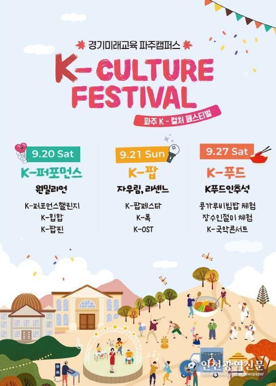 [인천광역신문] 관리자 기자 | 경기도평생교육진흥원은 오는 20일과 21일, 27일 총 3회에 걸쳐 우리 음악과 음식, 전통문화 등을 아우르는 복합 문화축제 ‘K-컬처페스티벌’을 연다.