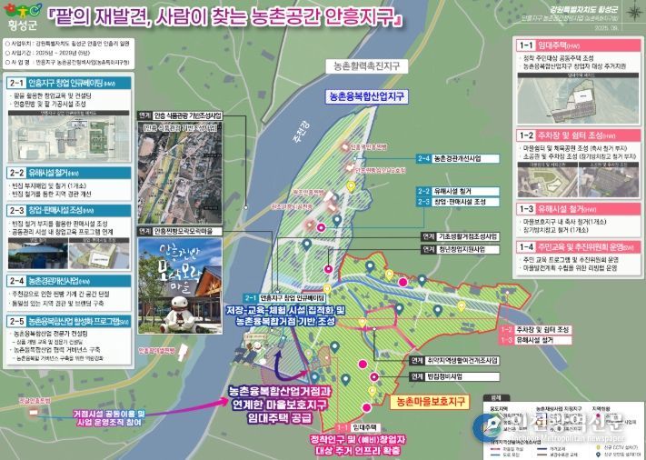 [인천광역신문] 관리자 기자 | 횡성군이 농촌공간 재구조화 및 재생을 위해 농림축산식품부가 추진한 ‘2025년 농촌공간정비사업(농촌특화지구형) 공모’사업에 선정되어 100억원의 사업비를 확보했다.