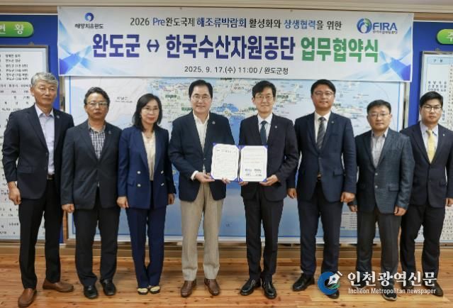 [인천광역신문] 관리자 기자 | 완도군은 한국수산자원공단과 26 Pre완도국제해조류박람회의 성공 개최와 2050 탄소중립 국가정책 실현을 위한 업무 협약을 체결했다.