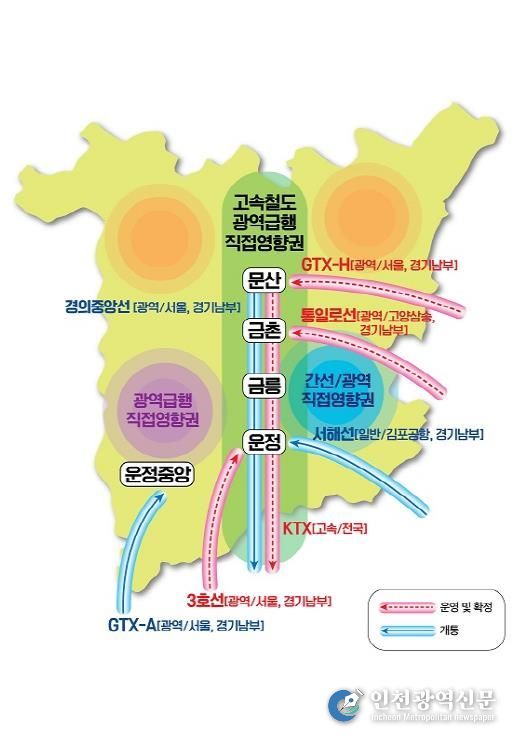 시는 그 밖에도 경의선 금촌역에 복합환승센터를 건립해 ‘지하철 3호선’과 케이티엑스(KTX) 파주 연장, ‘통일로선’ 전철, 수도권광역급행철도(GTX)-에이치(H) 노선 등의 광역 철도망이 ‘제5차 국가철도망 구축계획’에 포함될 수 있도록 총력을 기울일 방침이다.