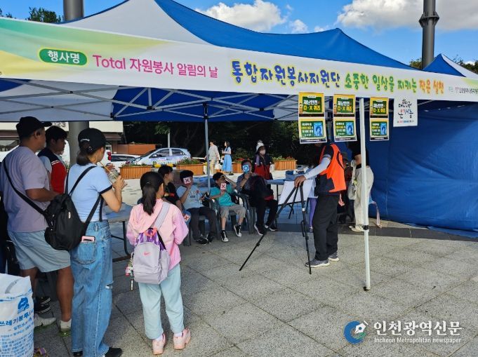 [인천광역신문] 최예준 기자 | 인천광역시중구자원봉사센터는 지난 21일 자유공원 광장에서 ‘토탈자원봉사 알림의 날’ 온기 나눔 행사를 성황리에 진행했다.