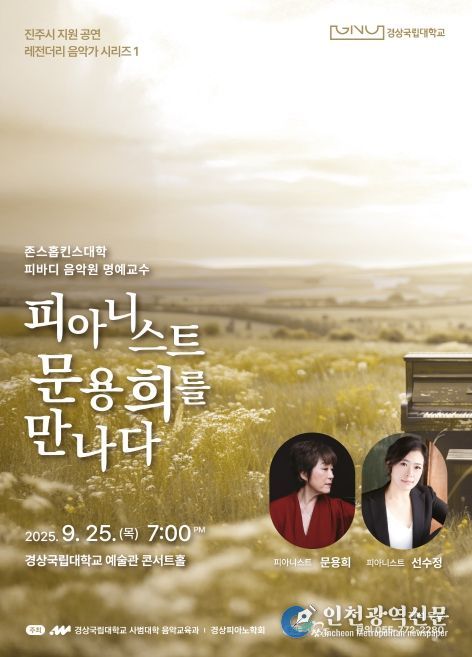 [인천광역신문] 관리자 기자 | 경상국립대학교 사범대학 음악교육과와 경상피아노학회는 세계적인 피아니스트 문용희 교수를 초청해, 9월 25일 오후 7시 경상국립대학교 예술관 콘서트홀에서 특별한 음악회 ‘피아니스트 문용희를 만나다’를 개최한다.