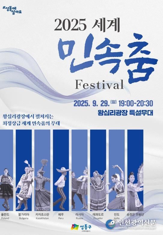 [인천광역신문] 최훈 기자 | 서울 성동구는 오는 9월 29일 오후 7시 왕십리광장에서 글로벌 민속 축제인 ‘2025 세계 민속춤 축제’를 개최한다고 밝혔다.
