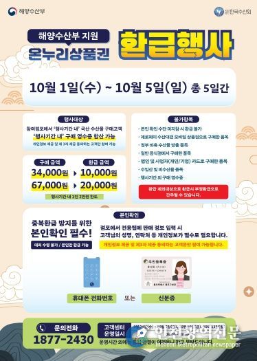이번 행사는 10월 1일부터 10월 5일까지 5일간 진행되며, ▲신거북·거북시장 ▲강남시장 ▲가좌시장에서는 국산 수산물 구매 시, ▲인천축산물시장에서는 국산 농축산물 구매 시 온누리상품권 환급 혜택이 제공된다.