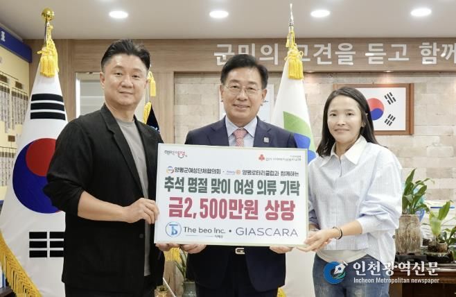 [인천광역신문] 관리자 기자 | 양평군은 지난 23일, ㈜더베오와 ㈜지아스카라가 2,500만 원 상당의 여성의류를 기탁했다고 밝혔다.
