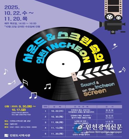 [인천광역신문] 최예준 기자 | 인천광역시 인천도시역사관은 오는 10월 22일부터 일반 시민을 대상으로 ‘도시학당-사운드&스크린 속의 인천’을 운영한다고 밝혔다.
