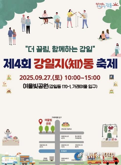 [인천광역신문] 최훈 기자 | 강동구 강일동은 오는 27일 10시부터 여울빛공원(강일동170-1)에서 온 가족이 함께 즐길 수 있는 ‘제4회 강일지(知)동축제’를 개최한다고 밝혔다.