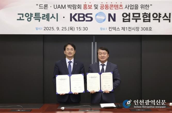 [인천광역신문] 관리자 기자 | 고양특례시는 지난 25일 고양 킨텍스에서 KBS N과‘드론·도심항공모빌리티(UAM) 박람회 홍보 및 공동 콘텐츠 사업을 위한 업무협약(MOU)’을 체결했다고 밝혔다.