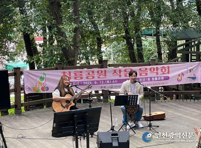 [인천광역신문] 최예준 기자 | 연수구 옥련1동 주민자치회(회장 이원우)는 지난 23일 옥련동 청룡공원에서 지역 주민들을 위한 ‘청룡공원 작은 음악회’를 개최했다.