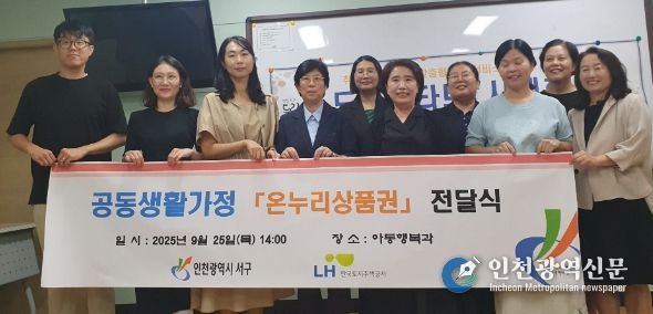 [인천광역신문] 최예준 기자 | 인천 서구는 LH청라영종사업단 보상판매팀에서 서구 관내 아동공동생활가정(아동복지시설) 7개소에 온누리상품권 700만 원을 기부했다고 밝혔다.