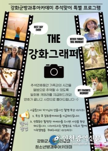오는 1일, 강화군 출신 포토그래퍼의 인물사진 촬영 특강이 진행되며, 특강 참여 청소년에게 일회용 카메라를 지급한다.