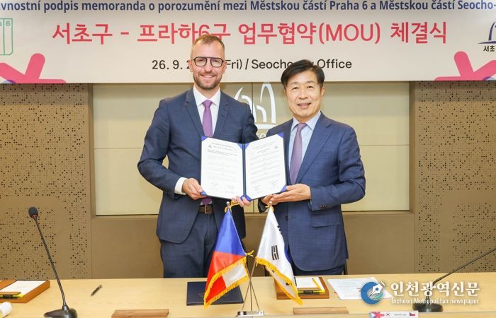 [인천광역신문] 관리자 기자 | 서울 서초구는 지난 26일 구청 5층 대회의실에서 체코 프라하 6구와 문화, 예술, 교육 분야 등 상호 교류 우호증진을 위한 우호도시협정 양해각서(MOU)를 체결했다고 밝혔다.