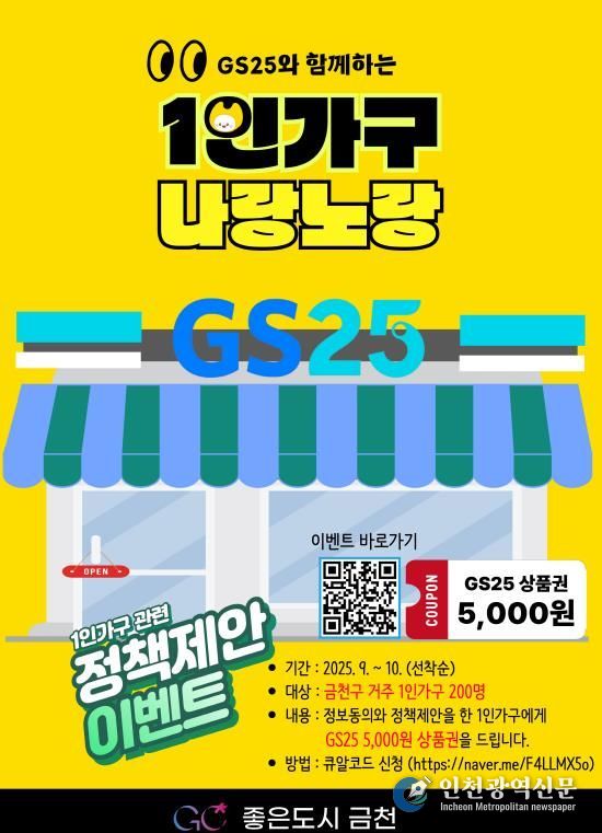 [인천광역신문] 최훈 기자 | 금천구는 관내 1인가구의 정책 참여와 정보 접근성을 높이기 위해 주민센터와 GS25에 1인가구 홍보존 ‘1인가구 나랑노랑’을 설치했다고 밝혔다.