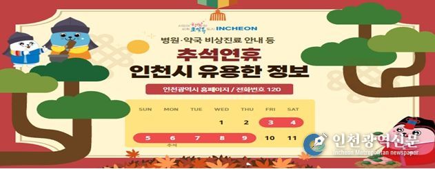 또한 시민들이 건강하게 명절을 즐길 수 있도록 연휴 기간에도 인하대병원을 포함한 26개 응급의료기관의 응급실을 24시간 운영한다. 지정 병·의원과 약국도 일정에 맞춰 문을 열어 비상 의료체계를 유지한다.