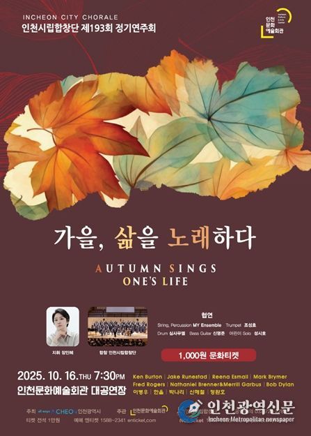 [인천광역신문] 최예준 기자 | 인천시립합창단(예술감독 윤의중)은 오는 10월 16일 오후 7시 30분, 인천문화예술회관 대공연장에서 깊어지는 가을의 정취와 함께 삶의 울림과 희망을 담은 무대를 선보인다.