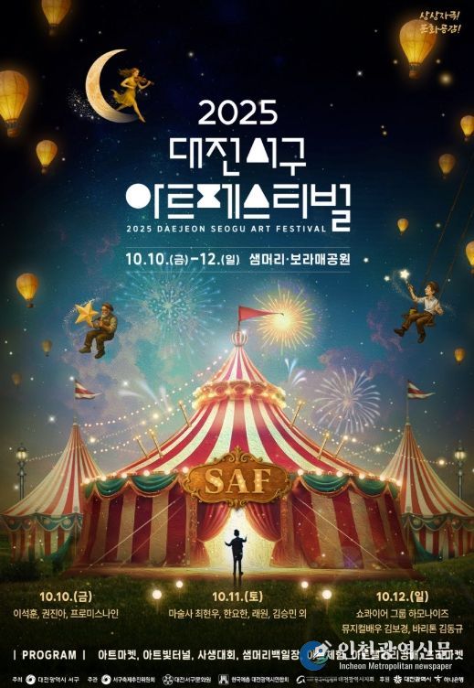 [인천광역신문] 관리자 기자 | 대전 서구는 10월 10일부터 12일까지 3일간 서구청 앞 샘머리공원과 보라매공원 일원에서 ‘2025 대전 서구 아트페스티벌’을 개최한다.