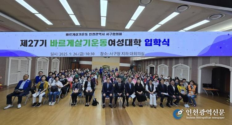 [인천광역신문] 최예준 기자 | 바르게살기운동 인천 서구협의회는 9월 27일 서구청 대회의실에서 ‘제27기 바르게살기운동 서구여성대학 입학식’을 개최했다.