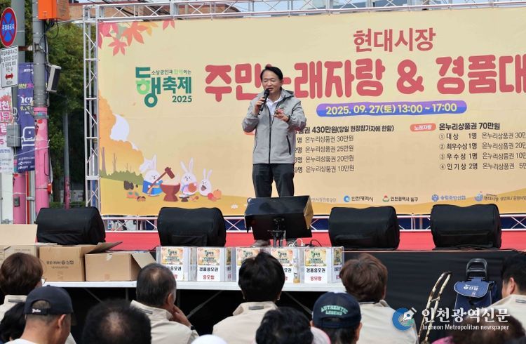 [인천광역신문] 최예준 기자 | 인천 동구는 지난 27일 현대시장에서 ‘현대시장 주민노래자랑&경품대잔치’를 성황리에 개최했다고 밝혔다.