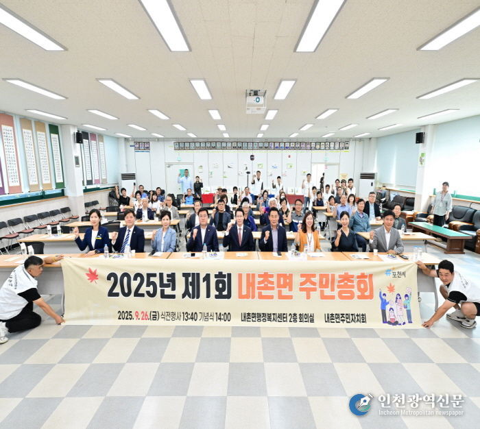 [인천광역신문] 관리자 기자 | 포천시 내촌면주민자치회는 지난 26일 내촌면행정복지센터 회의실에서 주민 70여 명이 참여한 가운데 ‘2025년 제1회 내촌면 주민총회’를 성황리에 개최했다.