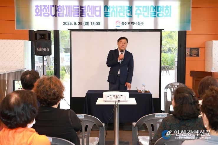[인천광역신문] 관리자 기자 | 울산 동구는 9월 29일 오후 4시 힐스테이트 이스턴베이 1층 카페테리아에서 김종훈 동구청장과 주민 50여명이 참석한 가운데 ‘화정다함께돌봄센터’ 설치와 관련해 주민설명회를 개최했다.