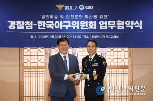 [인천광역신문] 관리자 기자 | KBO와 경찰청(청장 직무대행 유재성)은 9월 29일(월) 경찰청에서 업무 협약을 체결했다.