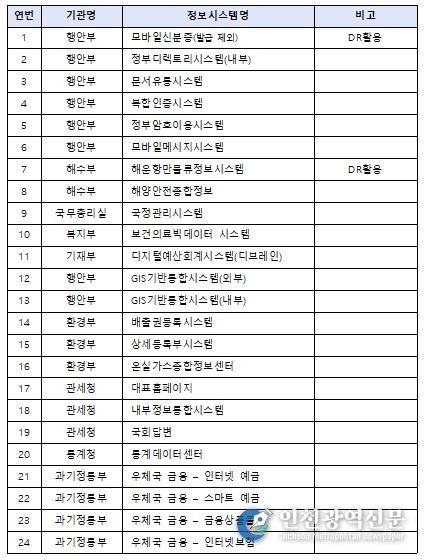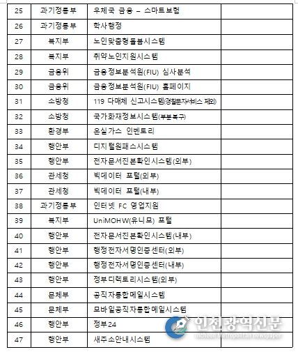 또한, 지자체등 기관 차원의 정확한 안내, 대응을 위해 96개 시스템 목록을 제공한다
