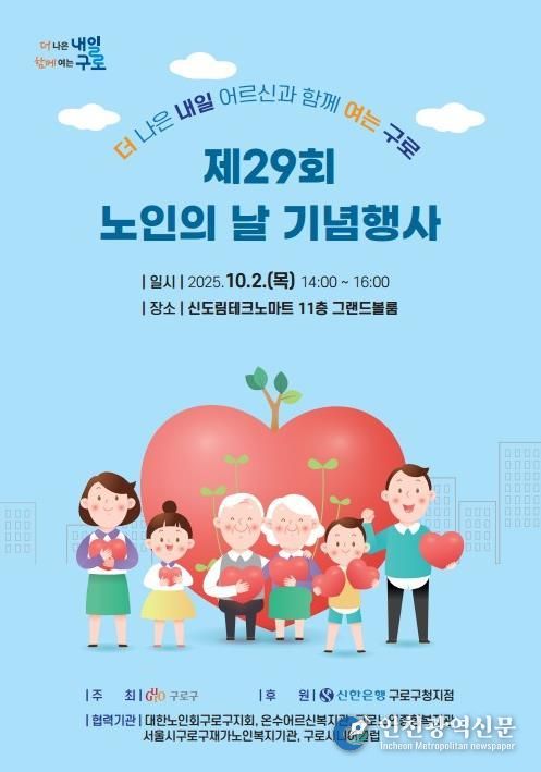 [인천광역신문] 최훈 기자 | 구로구가 내달 2일 오후 1시에 신도림테크노마트 11층 그랜드볼룸에서 제29회 노인의 날 기념행사를 개최한다.