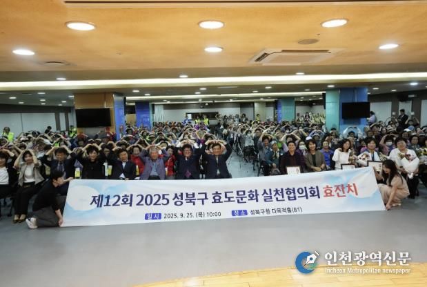 [인천광역신문] 관리자 기자 | 성북구 효도문화실천협의회가 10월 경로의 달을 앞두고 9월 25일 성북구청 다목적홀에서 ‘제12회 성북구 효도문화실천협의회 효잔치’를 열었다. 이날 행사에는 지역 독거어르신과 효행 표창자, 주민과 초청 인사 등 300여 명이 참석해 경로효친의 의미를 함께 나눴다.