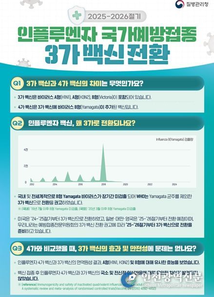 이번 인플루엔자 백신은 세계보건기구(WHO)의 권고사항과 예방접종전문위원회 심의에 따라 기존 4가 백신에서 3가 백신으로 전환*된다.