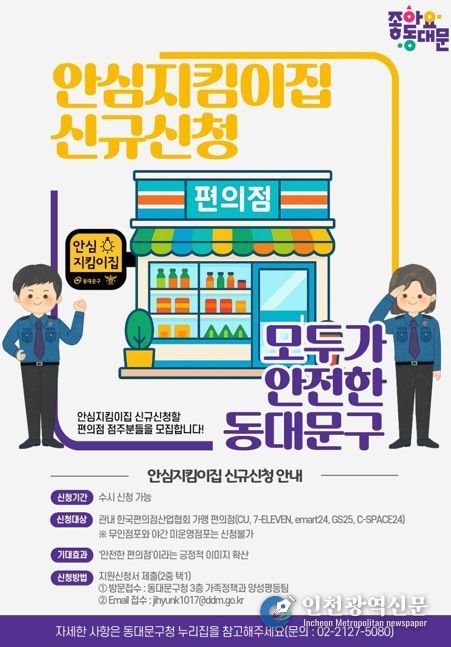 [인천광역신문] 최훈 기자 | 서울 동대문구는 여성·아동 등 범죄취약계층을 보호하기 위해 안심지킴이집 신규 지정 확대 사업을 추진한다고 밝혔다.