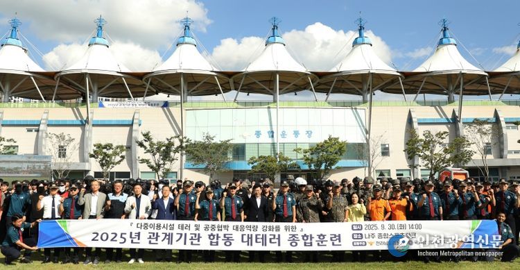 [인천광역신문] 관리자 기자 | 전남경찰청은 나주종합스포츠파크에서 국가정보원(광주지부), 육군 제31보병사단, 제11공수특전여단, 공군 제1전투비행단, 전남소방본부, 영산강유역환경청 등 10개 기관 250여명이 참여한 가운데 관계기관 합동 대테러 종합훈련을 실시했다.