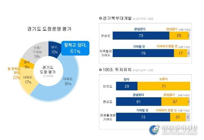[인천광역신문] 관리자 기자 | 경기도민 10명 중 6명이 도정 운영을 긍정적으로 평가한 것으로 나타났다.