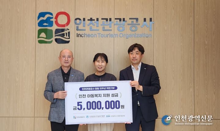 [인천광역신문] 최예준 기자 | 인천관광공사가 창립 10주년을 맞아 인천지역 아동복지 지원 성금 500만원을 인천아동복지협회에 전달했다.