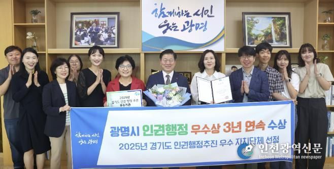 [인천광역신문] 관리자 기자 | 광명시가 경기도가 선정하는 인권 행정추진 우수 기관으로 3년 연속 선정되며 인권 선도 도시로 확고히 자리매김했다.