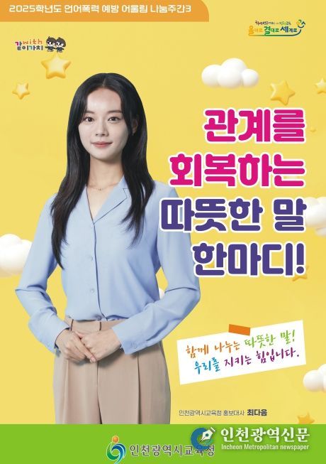 인천시교육청 관계자는 “언어폭력은 학생들의 정서와 학습, 대인관계에 큰 영향을 미친다”며 “이번 어울림 나눔주간이 서로 존중하며 긍정적으로 소통하는 계기가 되길 기대한다”고 말했다.