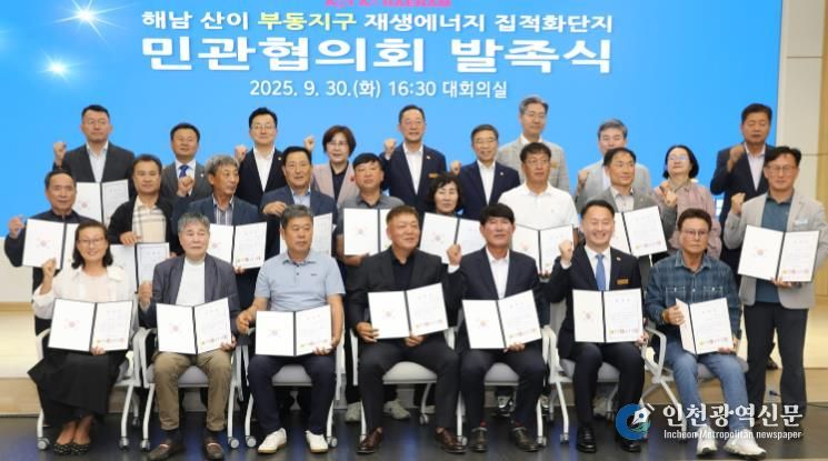 [인천광역신문] 관리자 기자 | 해남군은 9월 30일 해남군청 대회의실에서‘해남 산이 부동지구 재생에너지 집적화단지 민관협의회’발족식을 개최하고, 대규모 재생에너지 집적화단지 조성을 위한 본격적인 민관 협력 체계 구축에 나섰다.