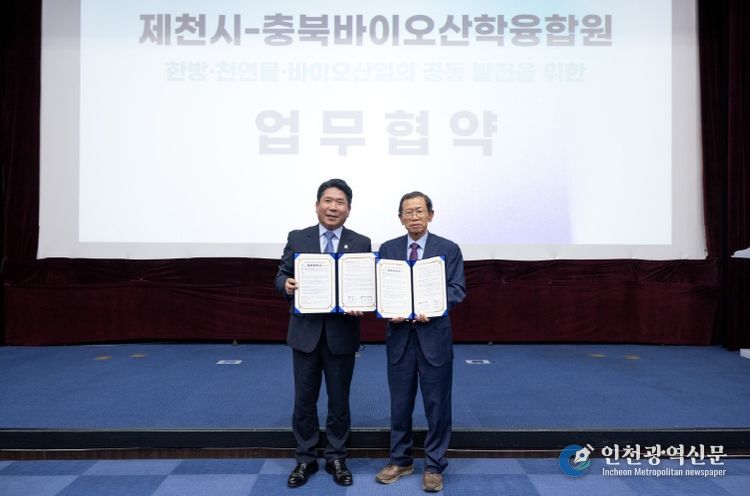 [인천광역신문] 관리자 기자 | 제천시는 9월 30일 ‘2025 제천국제한방천연물산업엑스포’ 기간 중 한방생명과학관 다목적강당에서 충북바이오산학융합원과 한방·천연물산업 발전을 위한 업무협약(MOU)을 체결했다.