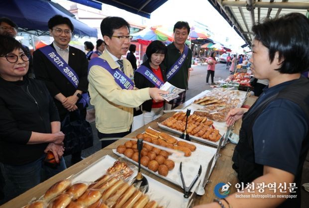 [인천광역신문] 관리자 기자 | 박병규 광산구청장과 광산구 공직자들이 1일 송정매일시장에서 추석 맞이 명절 장보기 행사를 진행했다.
