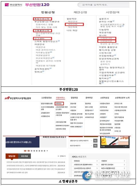 보다 자세한 내용은 각 기관(부산민원120, 소방재난본부, 상수도사업본부) 누리집 공지사항을 통해 확인할 수 있으며, 전화 문의는 시 통합민원과로 하면 된다.