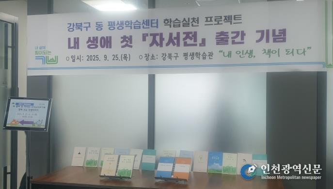 [인천광역신문] 최훈 기자 | 강북구는 지난 9월 25일 동 평생학습센터에서 ‘내 생애 첫 자서전 – ChatGPT와 함께 쓰는 인생 이야기’ 프로그램을 마무리하고 출간 기념식을 개최했다고 밝혔다.